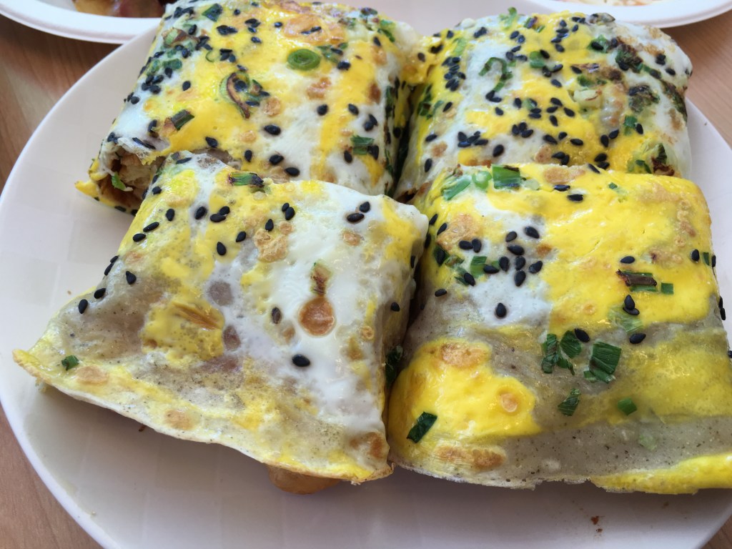 Glutinous rice is wrapped around your choice of fillings, such a fried egg, pork floss, and pickled mustard greens. The result is a dense, filling, and savory breakfast that will definitely get you through the day!
